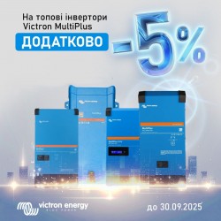 Готуємося до сезону: до кінця вересня діє спеціальна пропозиція на вибрані моделі інверторів Victron MultiPlus та MultiPlus-II — техніку, яку обирають професіонали для стабільного та гнучкого енергозабезпечення!