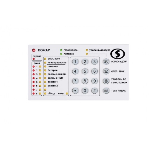 Выносной модуль индикации и управления. Совмещен с клавиатурой. Имеет светодиодную индикацию.  8 зон. Постановка под охрану кодами с клавиатуры. Работает с «Лунь-11».