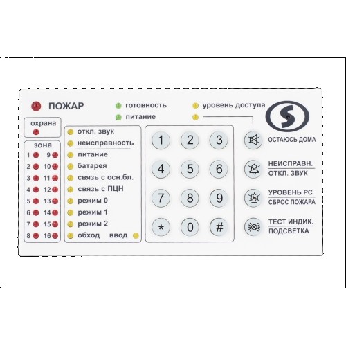 Выносной модуль индикации и управления. Совмещен с клавиатурой. Имеет светодиодную индикацию 16 зон...
