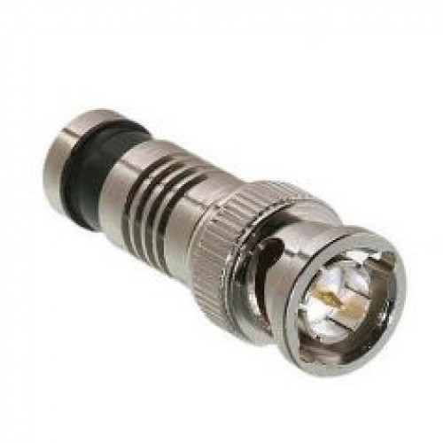Роз'єм для монтажу на коаксіальний кабель типу RG59. Монтується за допомогою спеціального інструменту. Рекомендується для використання в системах HD-SDI, Turbo-HD, AHD і HDCVI. Забезпечує надійний контакт. На відміну від різьбових і обтискних роз'ємів, у компресійних для фіксації на кабелі використовують пластикову втулку, яку заганяють спеціальним інструментом між металевою циліндричною частиною роз'єму й оболонкою кабелю та рівномірно обтискають кабель по колу. Встановлений конектор не може бути демонтований та використаний повторно. Корпус роз'єму виконаний із цинкового сплаву з нікелевим покриттям, що гарантує надійний електричний контакт та захист від корозії.